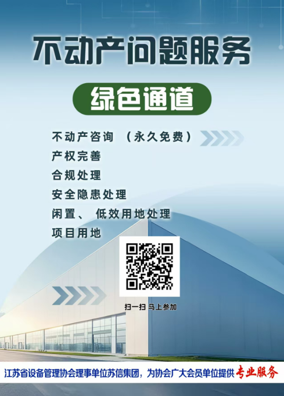 8月16日,协会在公众号上发布了“不动产问题服务”调查表,会员单位如有不动产权证完善、安全隐患处理、闲置及低效用地处置、项目用地申请等方面需求的,协会推荐苏信集团提供专业服务。